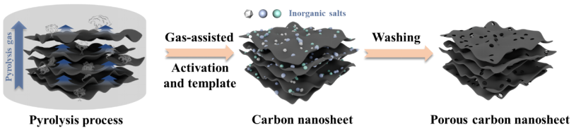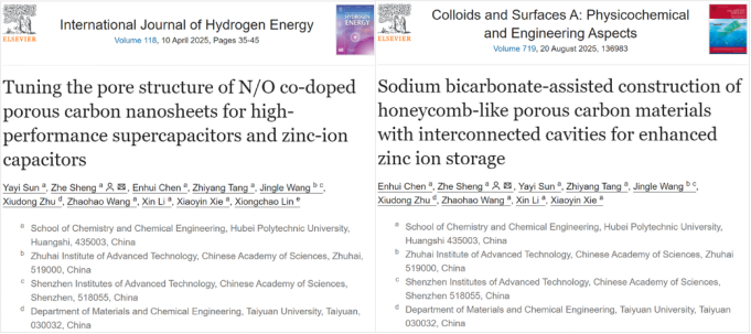 其中,孙雅怡同学在期刊International Journal of Hydrogen Energy发表了以“Tuning the pore structure of N/O co-doped porous carbon nanosheets for high-performance supercapacitors and zinc-ion capacitors”为题的论文,聚焦于多孔碳材料应用于锌离子混合电容器中的研究,以煤沥青为原料,通过“协同成孔”和“气体辅助剥离”技术,成功制备出N/O共掺杂多孔碳纳米片材料。该研究提出了一种简单高效的方法来合成孔隙结构可调的多孔碳纳米片材料,在高性能锌离子混合电容器材料中具有广阔的应用前景。