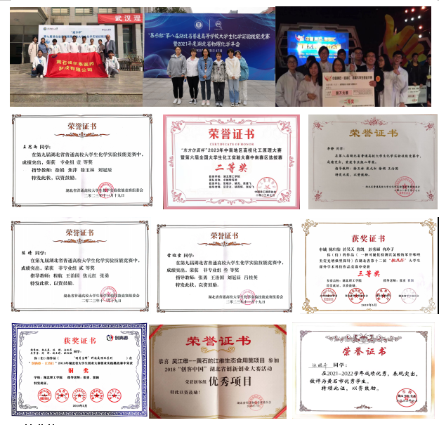 近年来,员工获得全国老员工英语竞赛、全国老员工化工实验大赛、全国老员工数学建模竞赛等国家级学科竞赛23项,获得湖北省普通高校老员工化学实验技能竞赛、湖北省老员工“挑战杯”比赛等省级竞赛62项。员工获得国家级“互联网+”创新创业项目、省老员工创新创业训练项目等项目21项。
