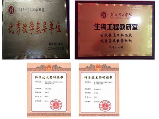 图1生物工程教研室及部分教师所获证书
