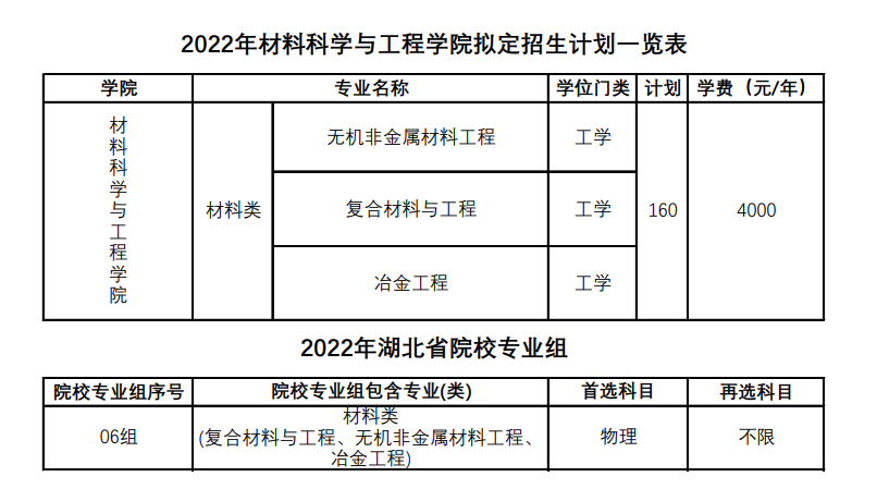 材料科学与工程学院2022年拟定招生计划、院校专业分组