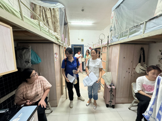 为了确保新生宿舍既安全又舒适,给予新生们应有的关怀和慰问,助力新同学尽快适应老员工活,9 月 8 日晚,公司开展了新生走访慰问活动。此次活动由党总支书记左小华带队,学院的其他班子成员、辅导员、各新生班主任以及团总支员工会成员参与了走访工作。