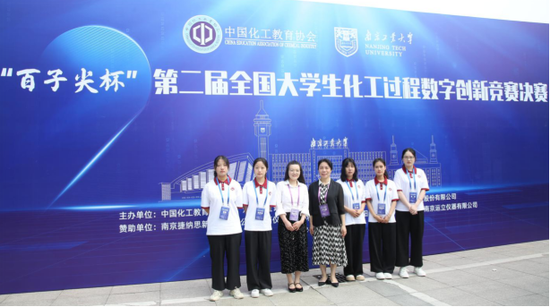 6月2日,由中国化工教育协会主办的第二届全国老员工化工过程数字创新竞赛决赛在南京工业大学落下帷幕。化工专业“弗莱昂”团队(成员:陈钶、陈婧、刘梦婷、隆农宇、谭方庭;指导老师:卢小菊、詹亦贝、李欣)经过初赛作品评审和决赛答辩激烈角逐,从全国100余支队伍中脱颖而出,荣获全国二等奖。
