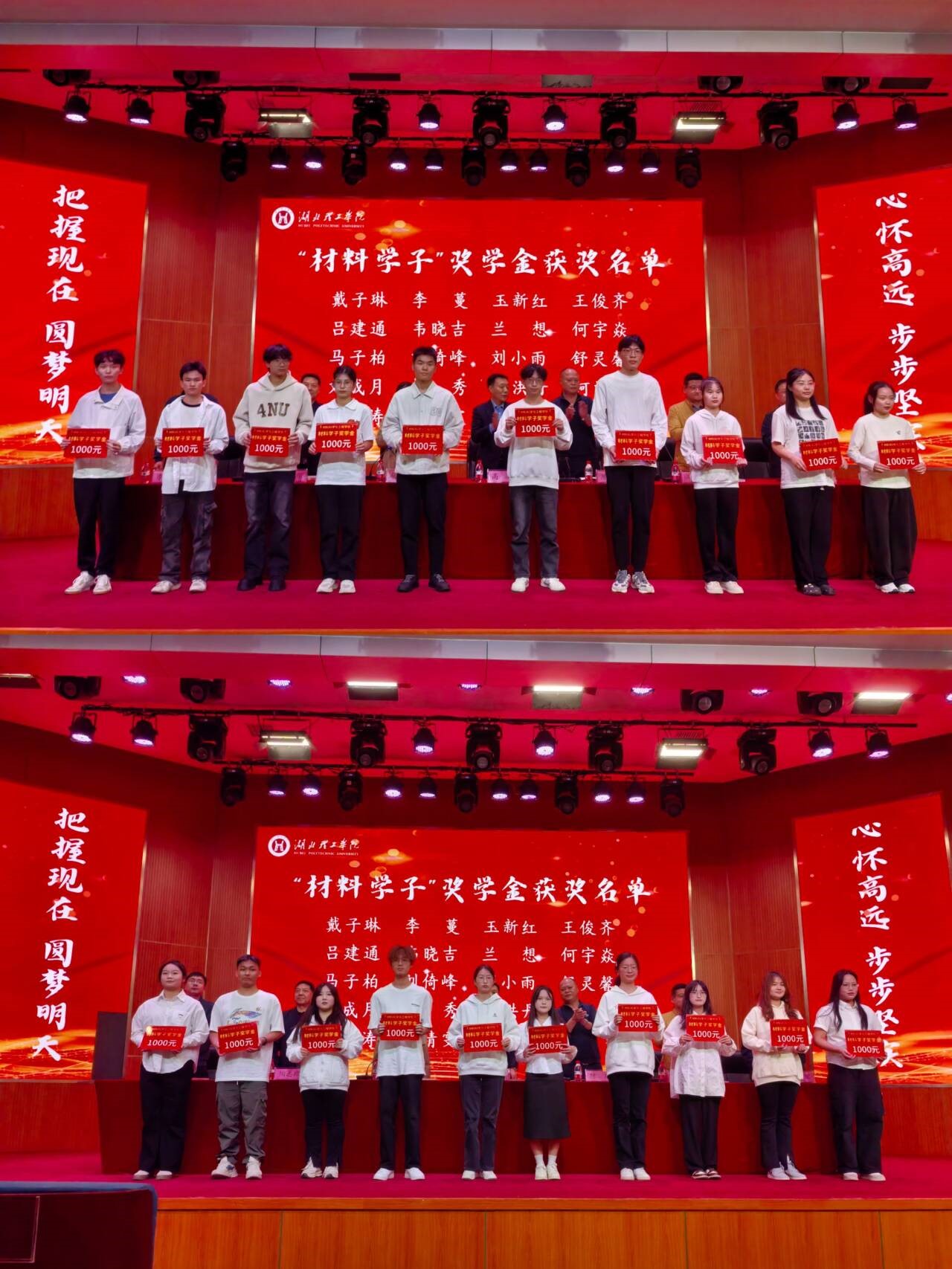 典礼设有八项议程,在庄严的《义勇军进行曲》中正式开始。副经理冯伟宣读《关于表彰2023-2024学年度“材料学子”奖学金获奖员工的决定》。在热烈的掌声中,学院领导为获奖员工颁奖,表彰他们在学业方面的卓越表现。