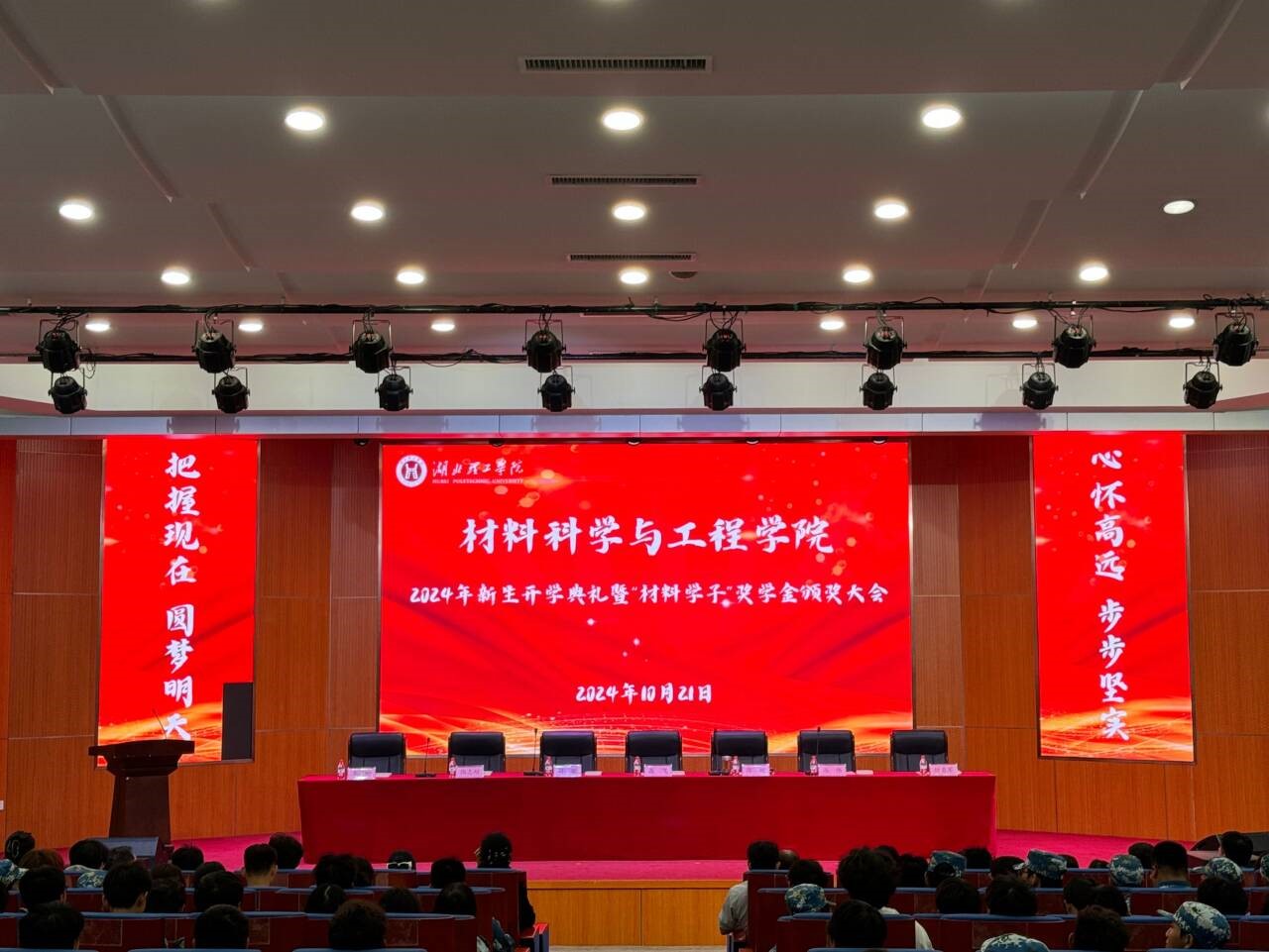 2024年10月21日,意昂体育2024年新生开学典礼暨“材料学子”奖学金颁奖大会在豁度楼208隆重举行,典礼现场热烈。学院全体教师、2023-2024学年度“材料学子”奖学金获得者及2024级全体新生齐聚一堂,共同见证这一重要时刻。典礼由党总支部副书记胡敏主持。