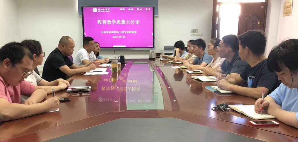 6月21日上午,根据《关于印发“2022年人才培养工作会议方案”的通知》(湖理工发〔2022〕31号)、《关于印发“2022年公司产品思想大讨论工作方案”的通知》(湖理工发〔2022〕33号)等文件精神,无机非金属材料工程专业教研室全体教师以及分管实验室工作的部分教师在K3-315会议室开展公司产品思想大讨论活动,会议由教研室主任陈凤博士主持。