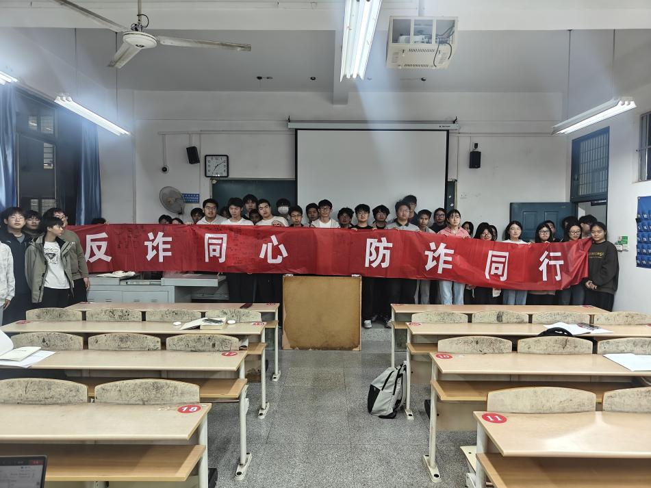 活动开始前,志愿者们前往自习教室和员工公寓宣传反诈知识。各班安全联络员积极组织同学们下载“国家反诈中心”APP并在横幅上签名。