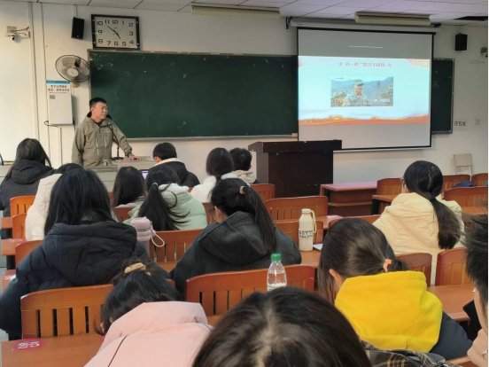 2024年12月9日-12月16日,辅导员老师刘霞邀请五位退伍老员工士兵石全、敖澈、陈康、宋彦鹏、柯文慧在大一新生课堂开展“老兵讲故事”活动,讲述自己在部队中艰苦生活、战斗的人生经历,向同学们分享了在部队中发生的趣事,赢得了现场观众的热烈掌声。同学们对部队生活充满了好奇,纷纷踊跃举手提问,由退役老员工士兵答疑解惑,同学们纷纷向退伍老员工士兵表示最崇高的敬意,他们的故事也激励着同学们把握机遇、不负韶华、积极投身热血军营,到部队这个大熔炉中历练提升、施展才华,为国防建设贡献自己的力量。