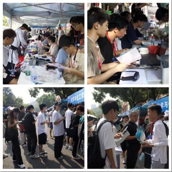 在迎新点,学院早早搭好帐篷,学长学姐们以饱满的热情和体贴的服务等待着学弟学妹们的到来。他们认真确认每一位新生的入学信息无误,保障每一位新生顺利完成入学报到。老师们亲切解答新生疑惑,拉近了新生与学校的距离,消除了新同学的陌生感。