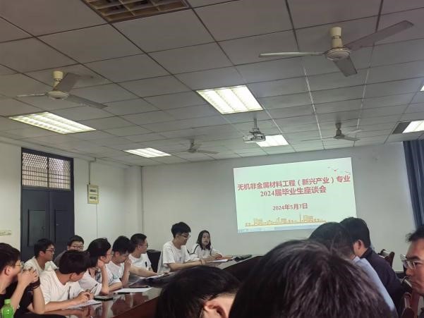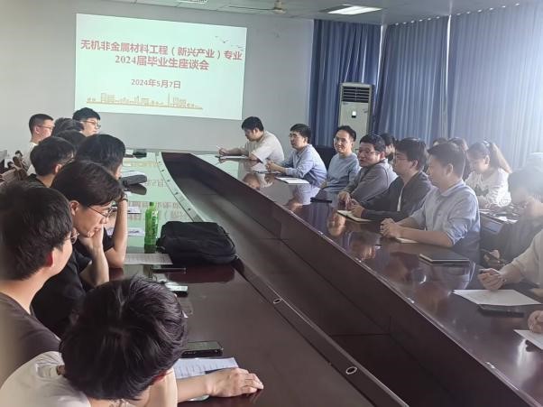 2024年5月7日下午,无机非金属材料工程专业在K3-401会议室召开2024届毕业生座谈会暨人才培养方案修订工作会,意昂体育教学副经理冯伟、经理助理李明、非金属材料教研室主任陈凤、专业教师以及30余名毕业生代表参加了座谈。