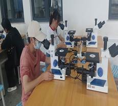我认真完成老师布置的每一个样品,经历过连续近两周,每天按照一个标准磨制3个不同类型样品的高强度训练;也体会过磨到手酸疼、手抖得几乎拿不稳样品,想要放弃的艰难时刻。但也正是在这些艰难时刻,让我渐渐爱上了金相制样。在金相技能大赛省赛选拔赛紧张的训练时期,实验室里满是专注与拼搏的气息。