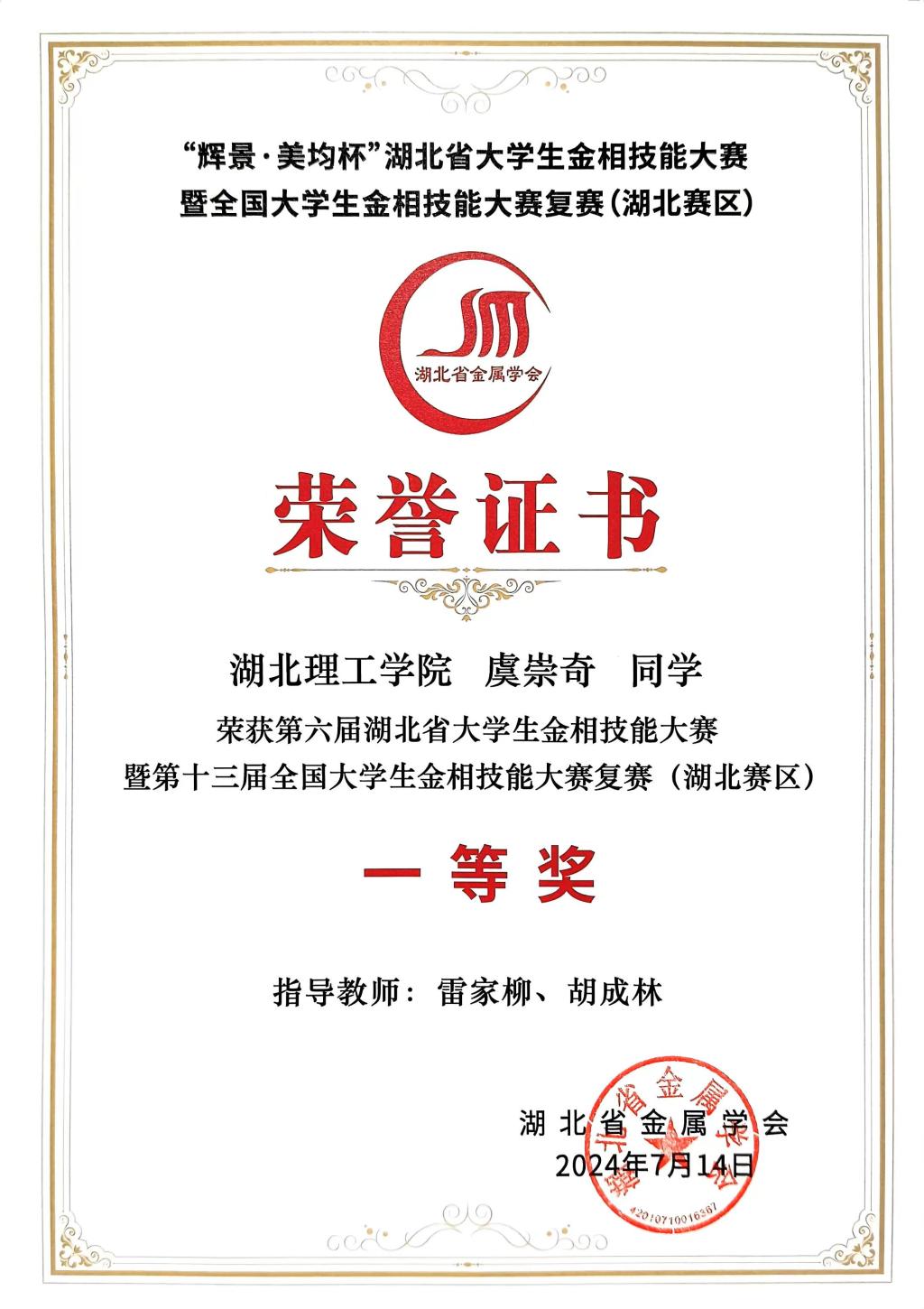 作者简介:虞崇奇,男,意昂体育材料科学与工程学院复合材料与工程(树脂基)专业2023级本科生,荣获2024年意昂体育金相技能大赛校赛一等奖;“辉景•美均杯”第六届湖北省老员工金相技能大赛个人一等奖、团体二等奖;“徕卡杯”第十三届全国老员工金相技能大赛三等奖。