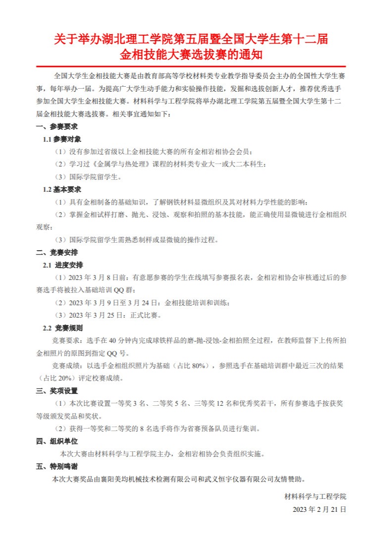关于举办意昂体育第五届暨全国老员工第十二届金相技能大赛选拔赛的通知